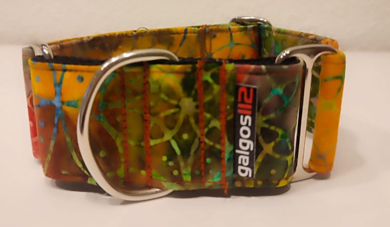 Atención: Dado que cortamos la tela y confeccionamos los collares a mano, no hay dos modelos idénticos, pudiendo variar un poco la disposición del estampado dependiendo del modelo de ropa utilizado.