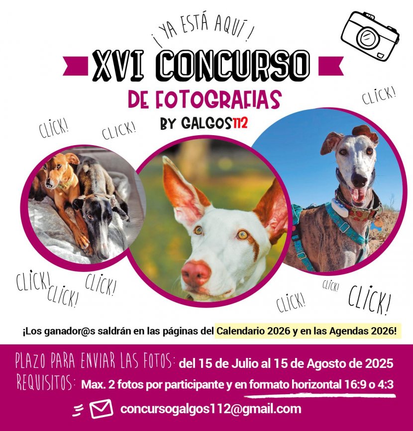 Un año más, os presentamos las fotos participantes del “XVI Concurso Fotográfico de Galgos 112”.